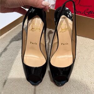 Sleek black patent leather heels. Signature red sole. Elegant and timeless design. Women’s size 36.5 and in great condition! Haven’t been worn in YEARS because they no longer fit!