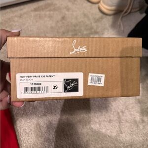 Sleek black patent leather heels. Signature red sole. Timeless elegance.