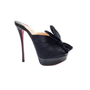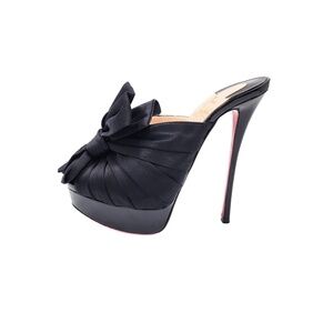 Christian Louboutin Black Patent Leather Satin Bow Platform Mule Heels EU 36.5