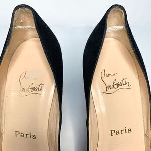 Elegant black peep toe heels. Signature red sole. Perfect for any occasion.