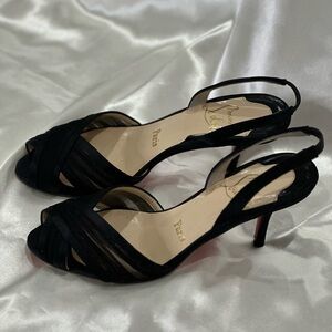 Christian Louboutin Black Peep Toe Sling Back Heels Chiffon Satin Size 6/36 Chic