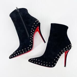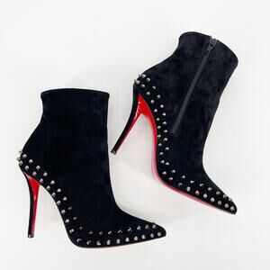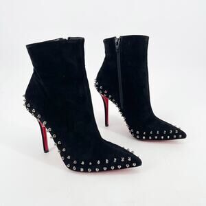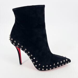 Christian Louboutin Black Spiked Willetta 100 Veau Velours Ankle Boots EU 38
