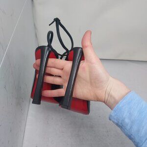 Please note lines/dents to the leather on side as shown. Please note faint scratch on back of heel that has been refurbished as shown