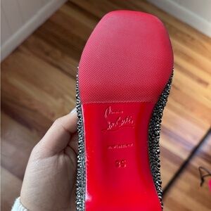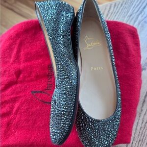 Featuring Swarovski rhinestones in an elegant flat. These are RARE Christian Louboutins.