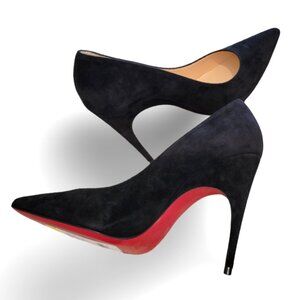 Step into the world of iconic luxury with this New With Tags pair of Christian Louboutin Alminette 100mm Pumps, a true work of art for your feet. These sexy, sculpted heels deliver that unmistakable Louboutin magic: black velvety suede, a razor-sharp pointed toe, and the legendary glossy red sole that turns heads with every step.