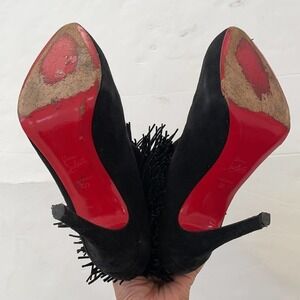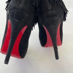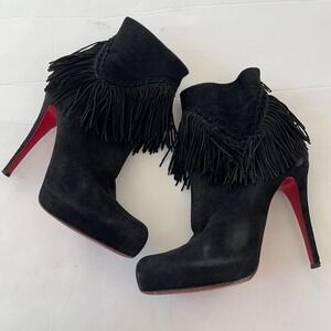 Christian Louboutin Black Suede leather Ron Fringe ankle booties 39
