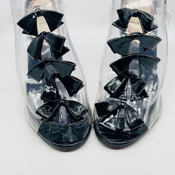 Christian Louboutin Black Triple Bow PVC Sandals | Size 7