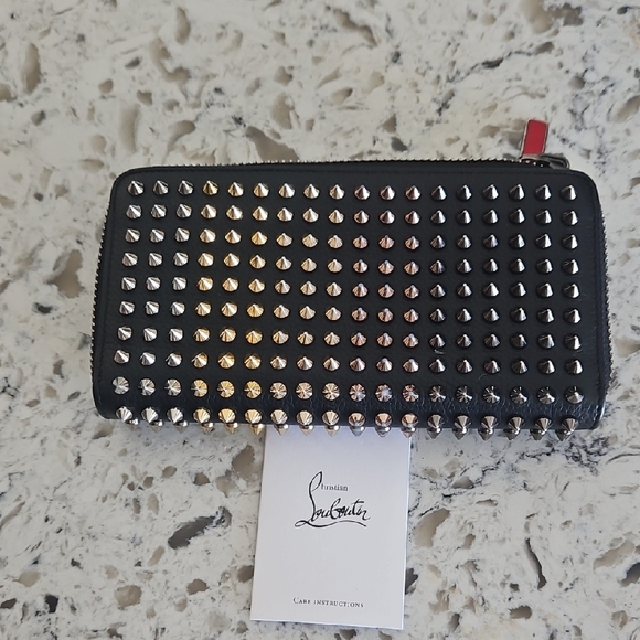 Christian Louboutin Black Wallet with Silver And Gold Studs