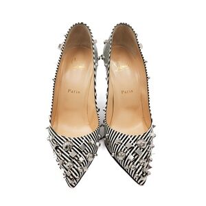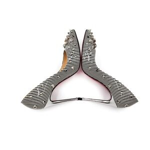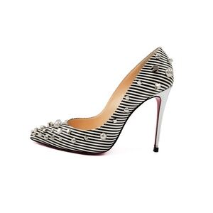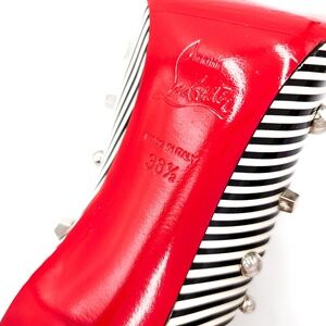 Christian Louboutin Black White Striped Patent Leather Studded Heels EU 38.5