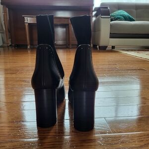 Experience the perfect blend of style and comfort with these Christian Louboutin heeled boots. Featuring a sleek black upper and a striking red sole, these boots are designed with a modern sock-like fit and a substantial block heel for added height. The pull-on style and minimalist design make them a versatile addition to any wardrobe. Brand new, never worn, size 36, Authentic Christian Louboutin boots without box or dust bags.