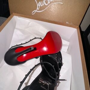 Christian Louboutin Black and Red Heels Strappy 36.5 RioJana Spikes Worn Once