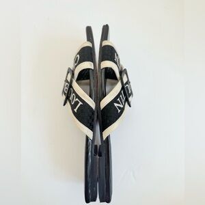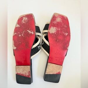 Christian Louboutin Black white leather criss cross Logo Crossimule slides EU 40
