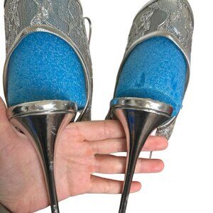 Christian Louboutin Women's Sz 40 US 10 Jose Altafine Lace Platform Silver Boots