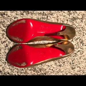 Size 39.5, damaged on both heels as shown. Red has peeled off, ships without box or dust bag