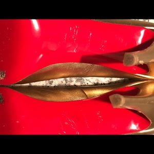 Bronze-tone metallic leather Chrisitan Louboutin Very Prive peep-toe pumps with tonal stitching, concealed platforms and covered heels. Includes box and dust bag.