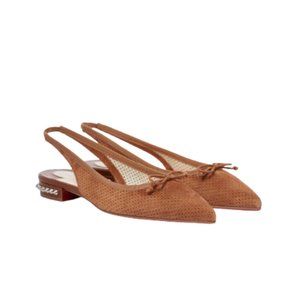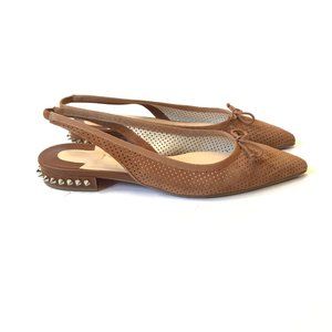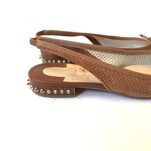 Elegant brown flats with a perforated design. Features a studded heel for added style. Perfect for casual or formal wear.