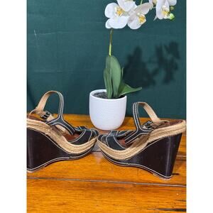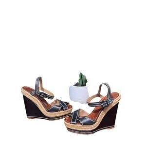 Christian Louboutin CALF Black Wedge Sole Sandals size euro 38