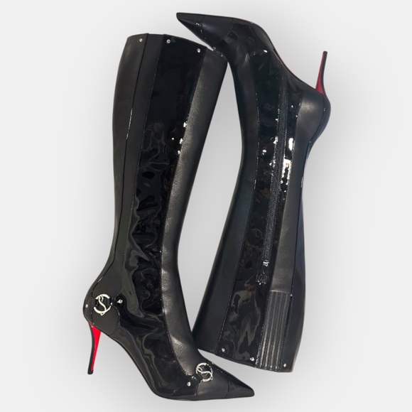 Christian Louboutin CL In The 90s Botta 80 Black Patent Leather Boots Size 37.5