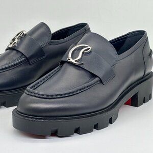 Christian Louboutin CL MOC LUG FLAT Leather Loafers Moccasin Shoes Marine