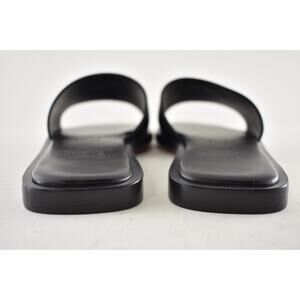 Christian Louboutin CL Mule Flat Black Leather Logo Slide Slip On Sandal 38.5