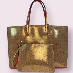 This listing is for Christian Louboutin Cabata Liege Pepite Metallic Cork Tote and Wallet.