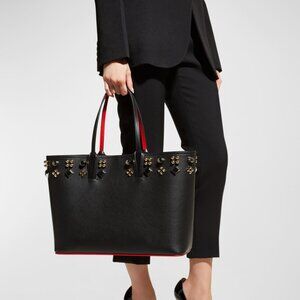 Christian Louboutin Cabata Tote in Grained Leather with Spikes- In Black Multi