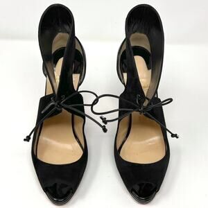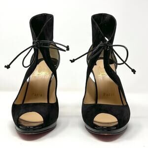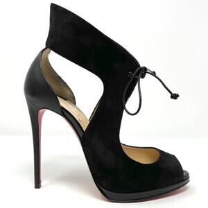 Christian Louboutin Campanina Black Suede Peep Toe Pumps- Size 36