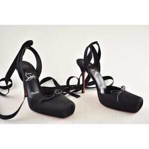 Christian Louboutin Cassia Lace Up 100 Black Tie Ballet Sandal Heel Pump 37