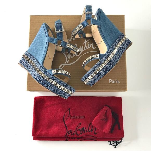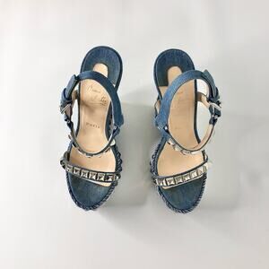 Christian Louboutin Cataclou 140 Jeans Wedge Ankle Strap Sandals