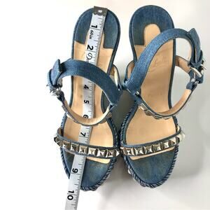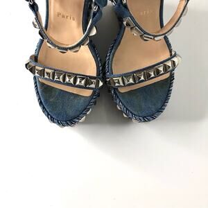 Christian Louboutin Cataclou 140 Jeans Silvers Studded Wedge Platform Sandals 37
