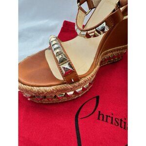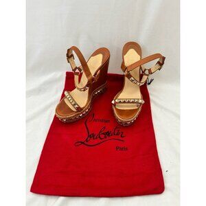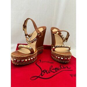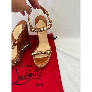 Christian Louboutin Cataclou Sandals Wedge Studded Brown Gold 38