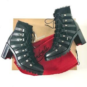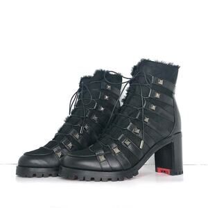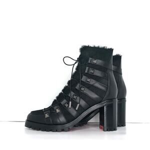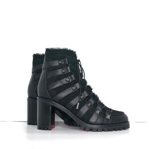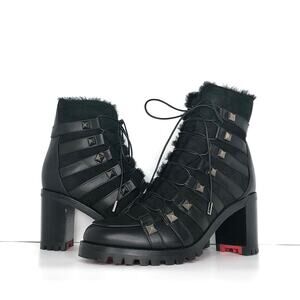 Christian Louboutin Chaletta 70 Black Shearling Lug Sole Ankle Boots Women’s 38