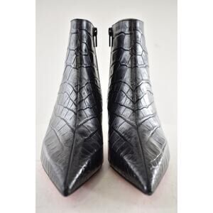 Christian Louboutin Condora Booty 55 Black Silver Croc Ali Ankle Heel Boot 38