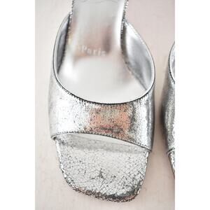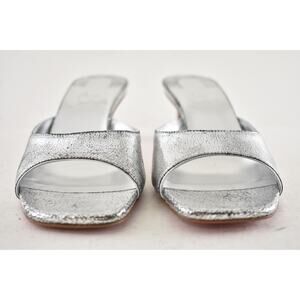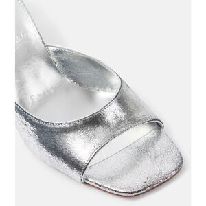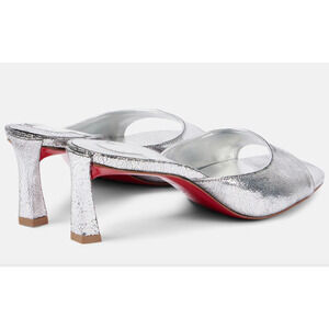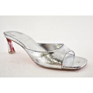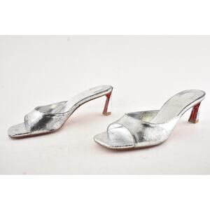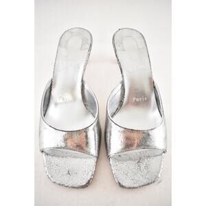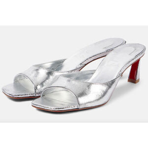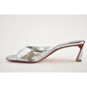 Christian Louboutin Condora Mule 55 Silver Backless Sandal Kitten Heel Pump 38.5
