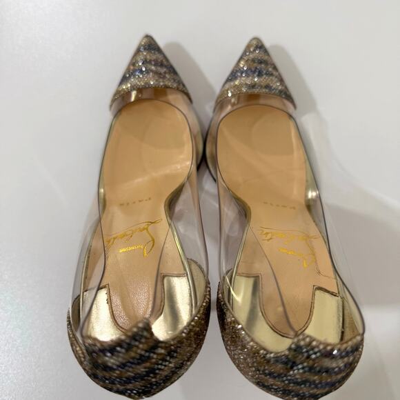 Christian Louboutin Debout Glitter PVC Stiletto Pointed Toe Heels Size 35.5