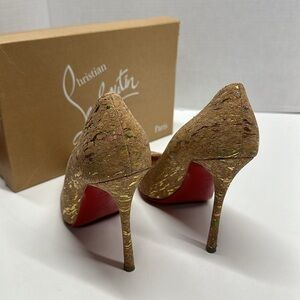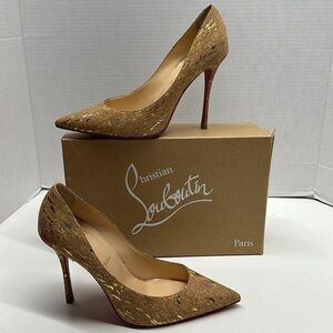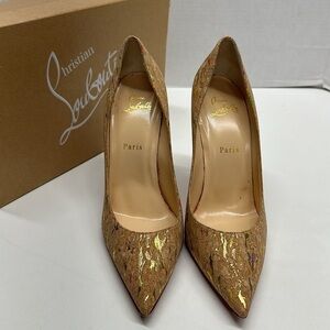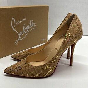 Christian Louboutin Decoltish Metallic Cork Red Sole Pump High Heel Shoes 39.5