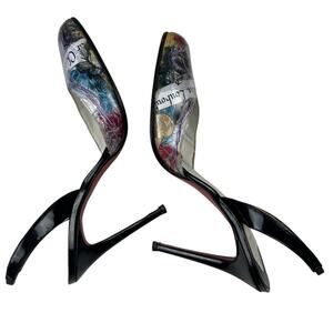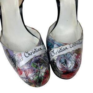 Christian Louboutin Decoupage Vintage 90s Black Patent Leather Slingback Pumps 8