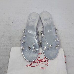 Christian Louboutin Degraqueenie Silver Jewel Flat Wedding Bridal Sandal
