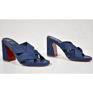 Christian Louboutin Disco Club 85 Blue Denim Backless Mule Sandal Heel 40