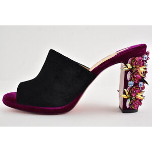 Christian Louboutin Donaflor 100 Black Velvet Figue Sandal Mule Heel Pump 36