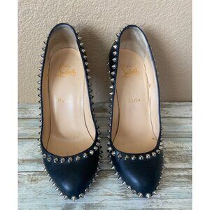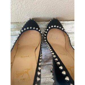 Christian Louboutin Dorispiky Black Leather Spiked Pumps 37.5/US7.5 w/COA No Box