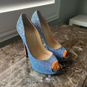 Christian Louboutin Dragonfly Glitter Peep Toe 39.5