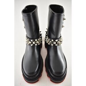 Christian Louboutin Dune Bike Flat Spike Black Leather Platform Ankle Boots 38