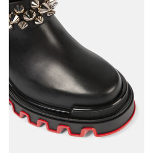 Christian Louboutin Dune Bike Spike Black Leather Platform Moto Ankle Boots 39