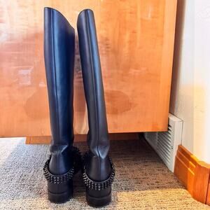Christian Louboutin Egoutina Tall Riding Boots spiked stud black leather pull-on