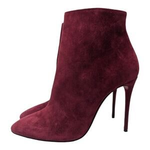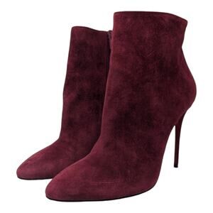 Christian Louboutin Eloise 100 ankle boot bootie burgundy red suede heels 37.5
