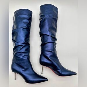 Christian Louboutin Epic Trotta Leather Metallic Blue Knee High Boots EU 39 US 9