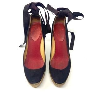 Christian Louboutin Espadrille Wedges – Ribbon Ankle Tie, EU 37
