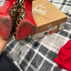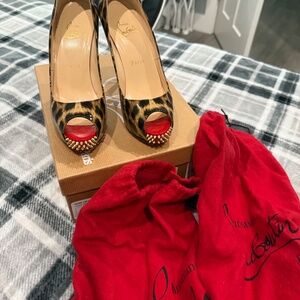 Christian Louboutin, European size 36.5, animal print heels with gold spikes