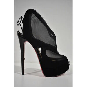 Christian Louboutin Farfamesh 150 Black Platform Peep Toe Sandal Heel Pump 36